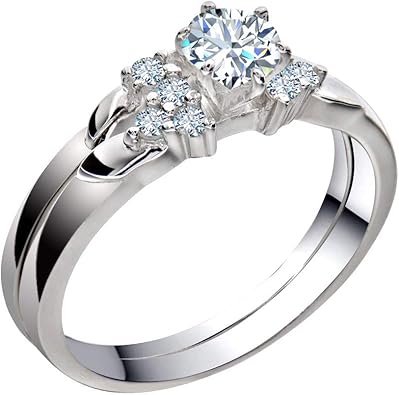 Flamereflection Stainless Steel Womens Wedding Engagement Rings Set Bridal Round White Cz Cubic Zirconia Band Size 5 11 Spj