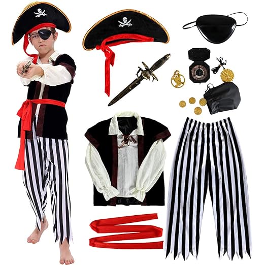 Amazoncom Boys Pirate Costume Set Skull Crossbones Striped