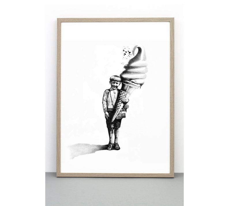 Boy With Giant Ice Cream Print Black White Art Etsy