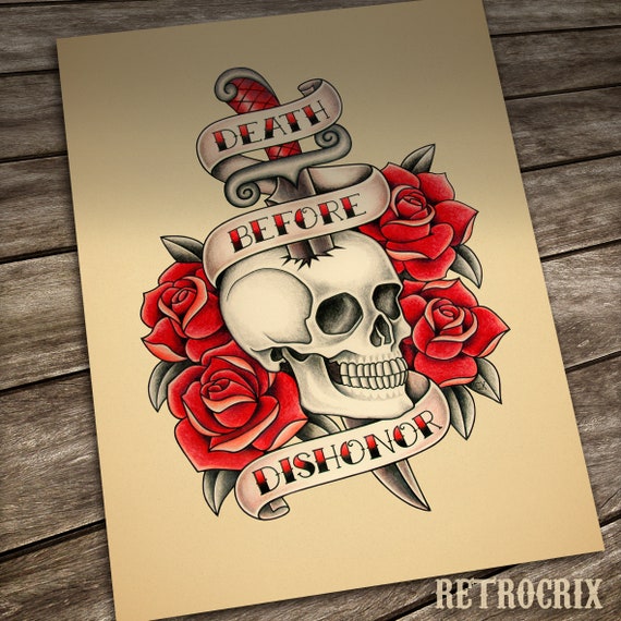Details About Death Before Dishonor Military Vintage Sailor Jerry Traditional Flash Print