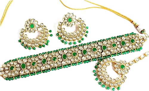 Amazon Com Glamorous Collection Green Kundan Choker Necklace Set